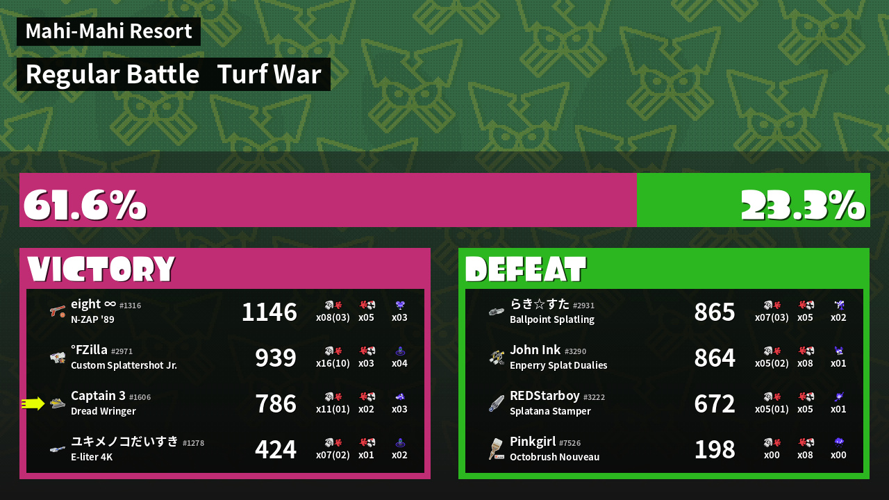 | Medals | #1 Enemy Splatter #1 Reefslider User #2 Overall Splatter | ||