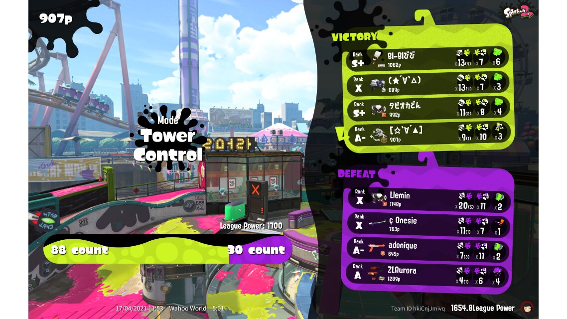| Mode | Tower Control - League Battle (Twin) | ||||||||||||||||||||||||||||||||||