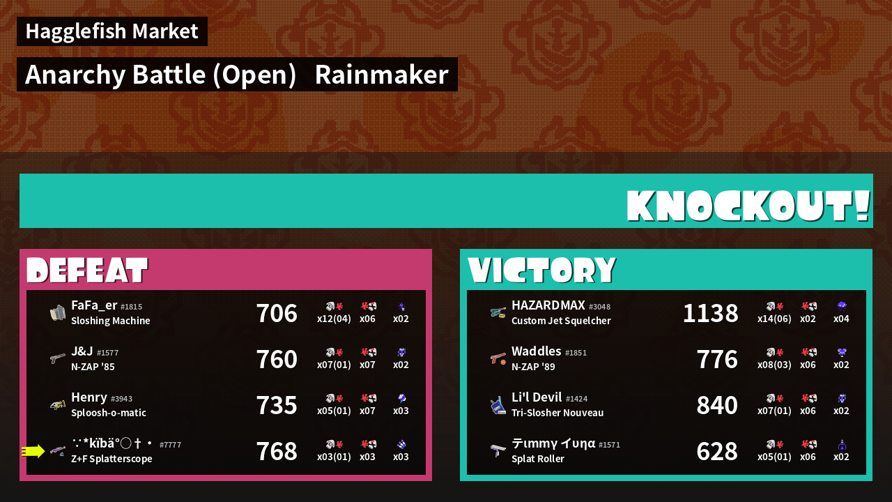 | Mode | Rainmaker - Anarchy Battle (Open) | ||