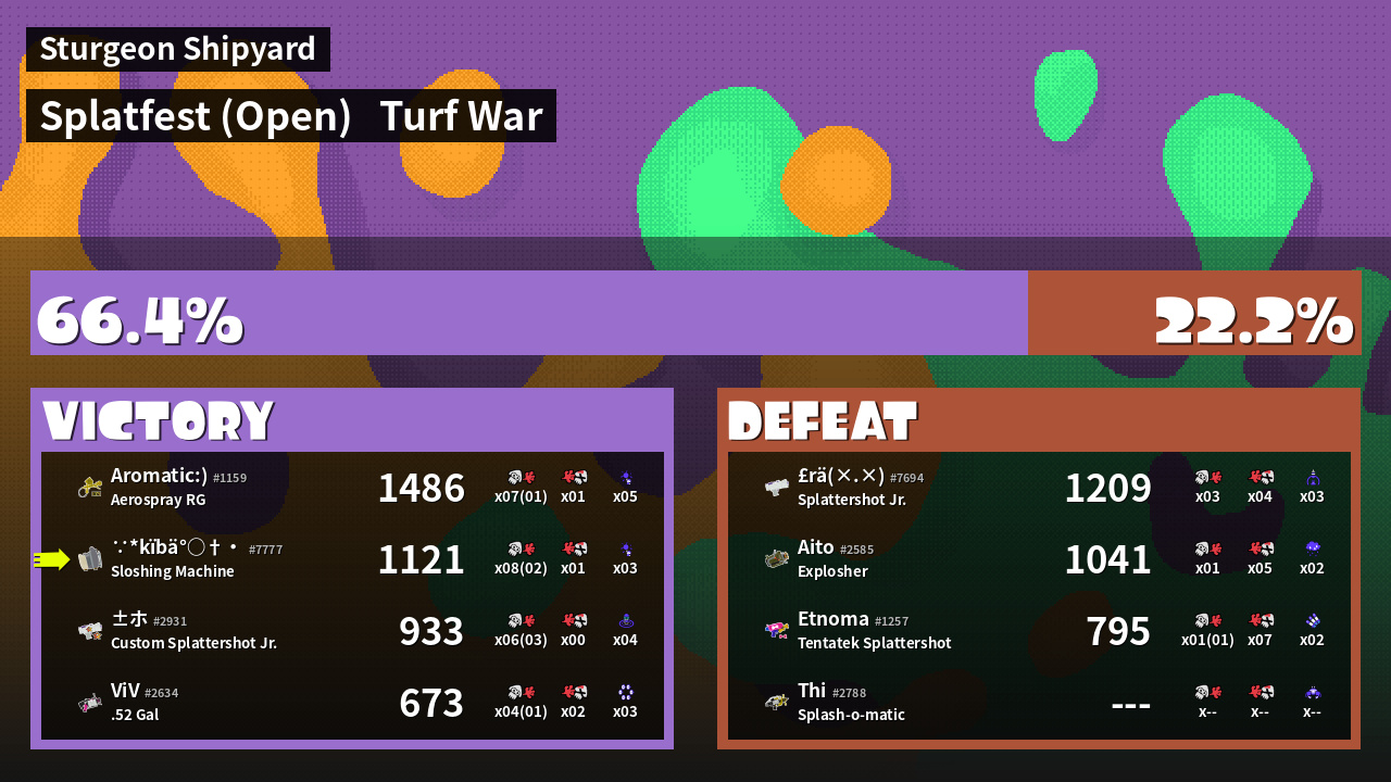 | Medals | #1 Overall Splatter #1 Enemy-Base Inker #1 Enemy Splatter | ||
