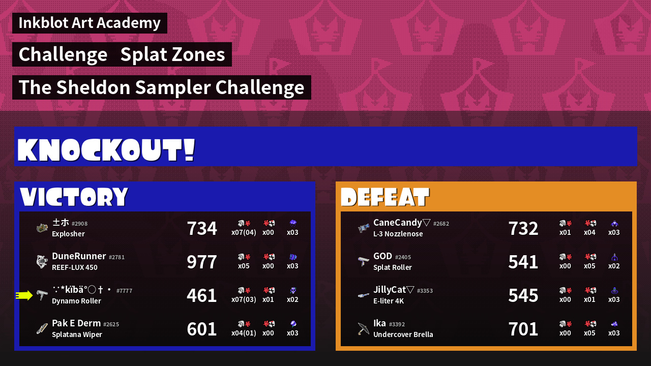 | Medals | #1 Overall Splatter #1 Splat Zone Guard #1 Tacticooler User | ||