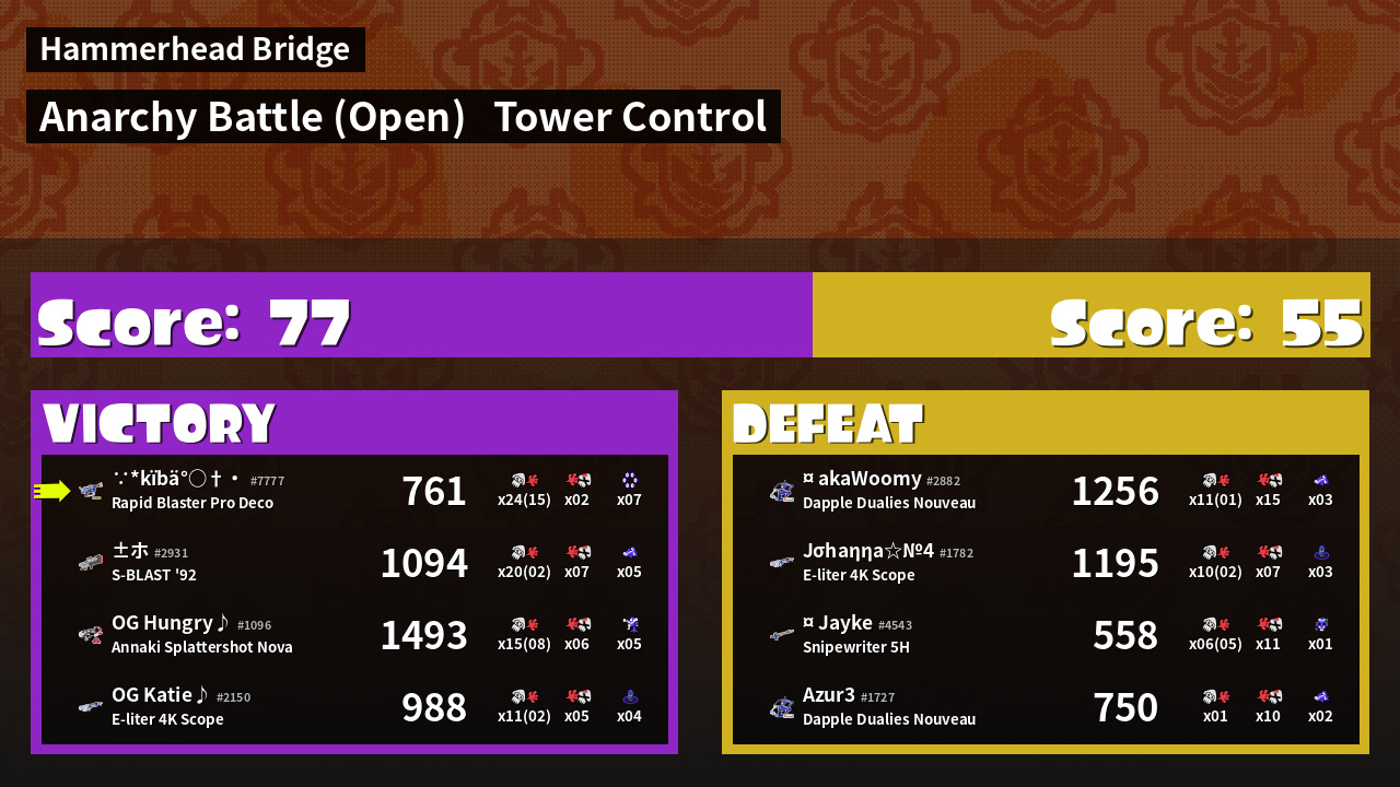 | Mode | Tower Control - Anarchy Battle (Open) | ||