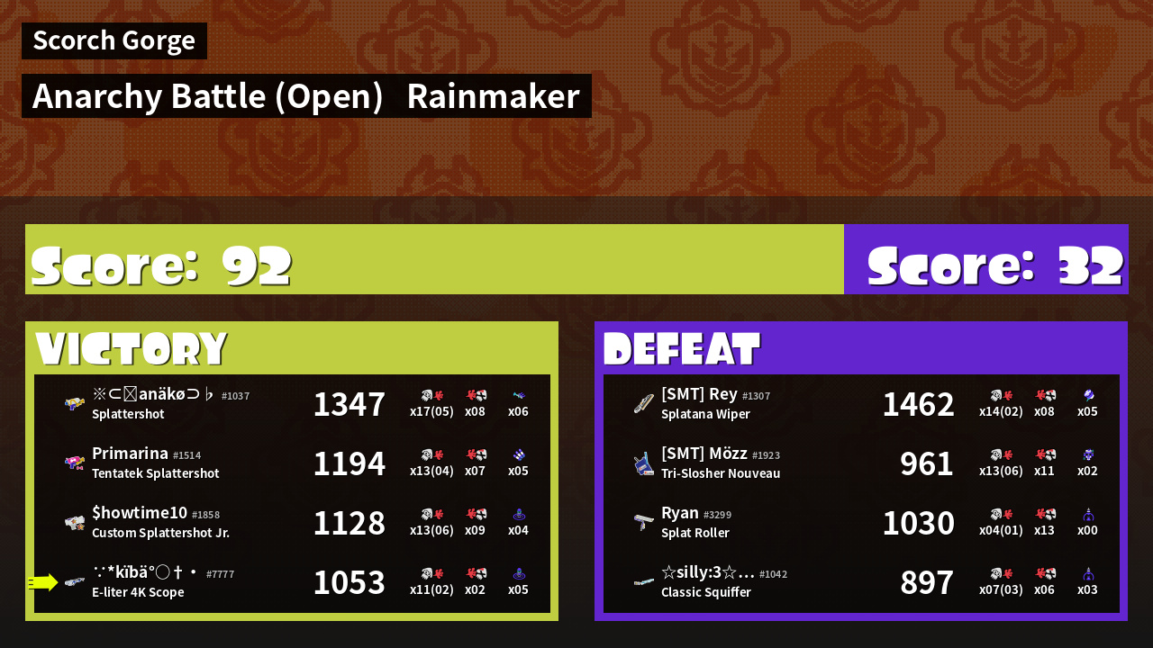 | Mode | Rainmaker - Anarchy Battle (Open) | ||