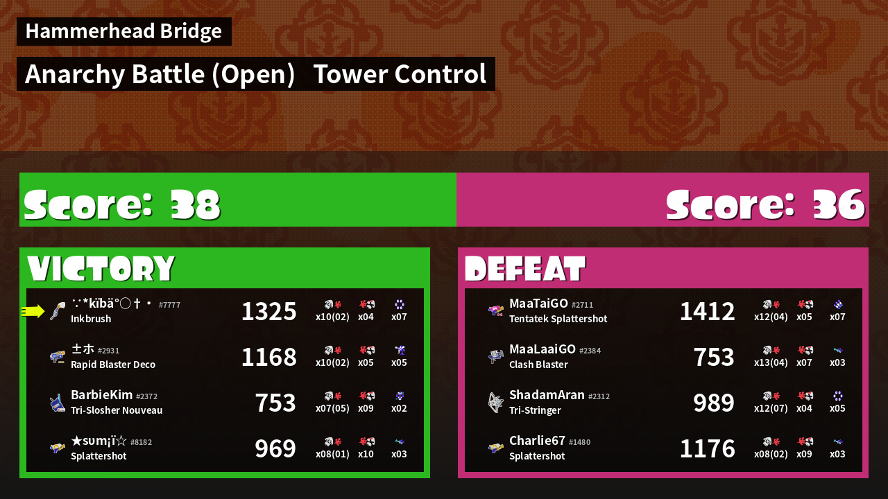 | Mode | Tower Control - Anarchy Battle (Open) | ||