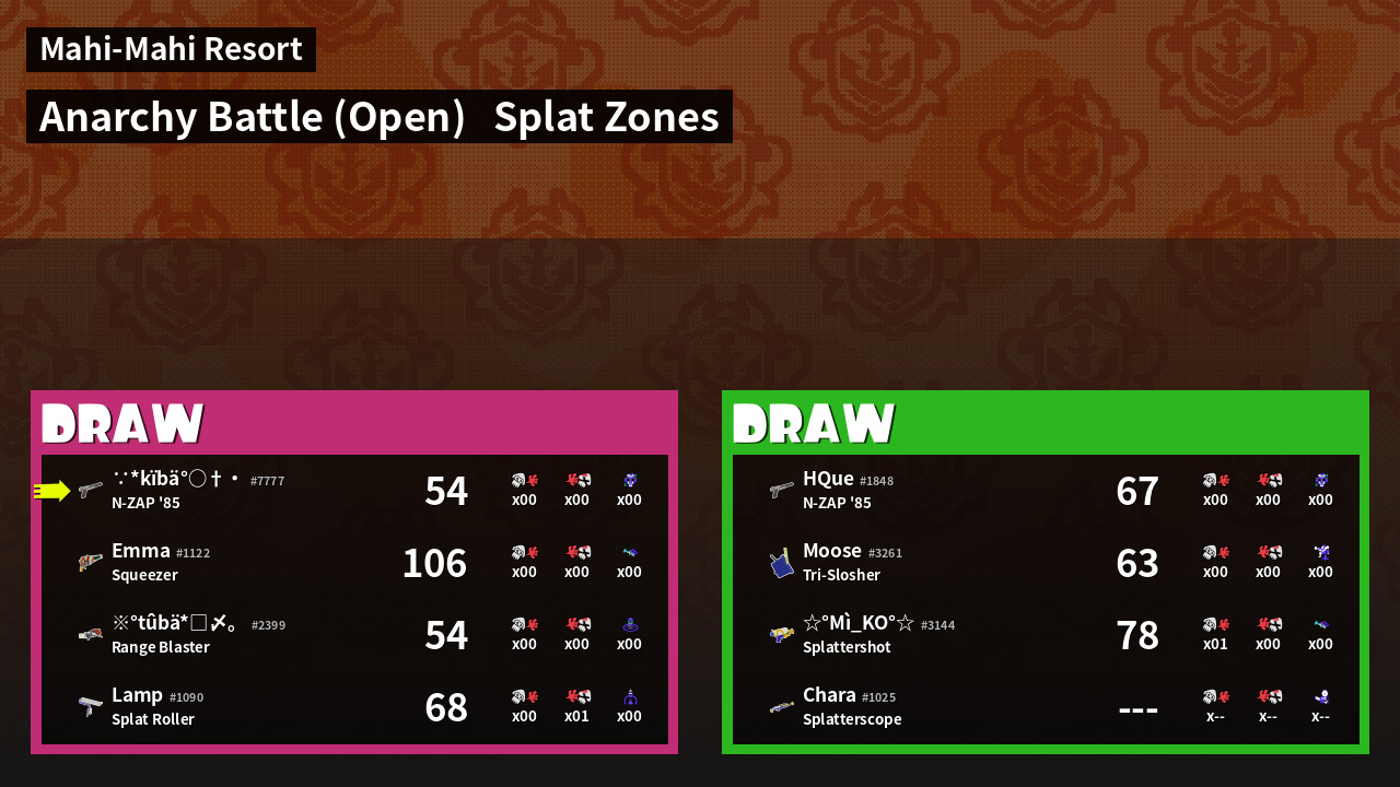 | Mode | Splat Zones - Anarchy Battle (Open) | ||