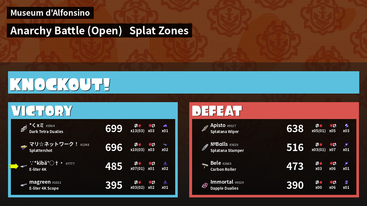| Mode | Splat Zones - Anarchy Battle (Open) | ||