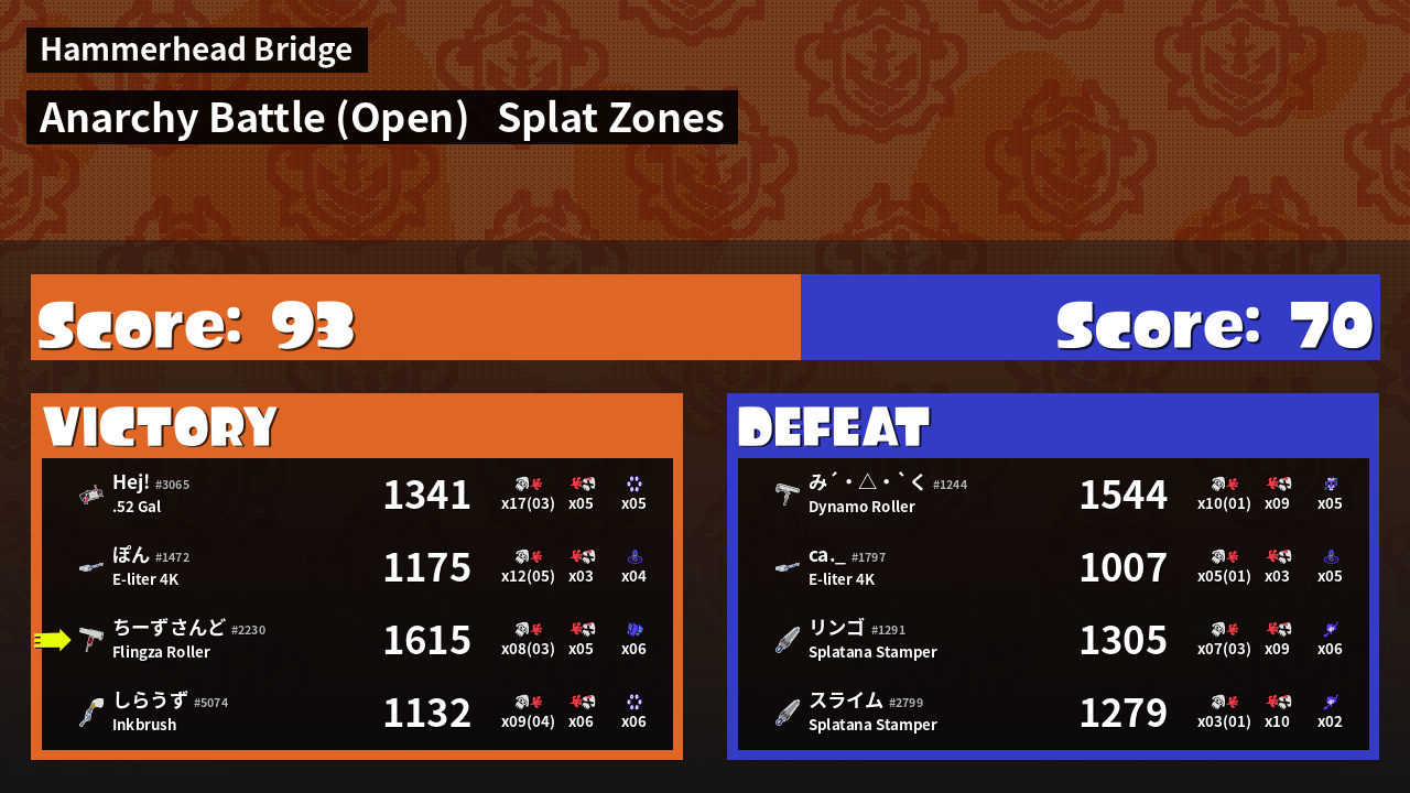 | Mode | Splat Zones - Anarchy Battle (Open) | ||