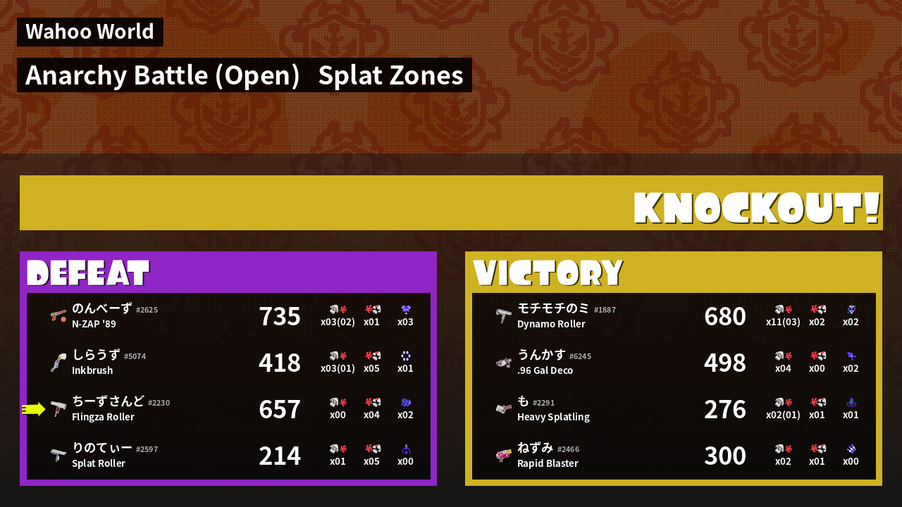 | Mode | Splat Zones - Anarchy Battle (Open) | ||