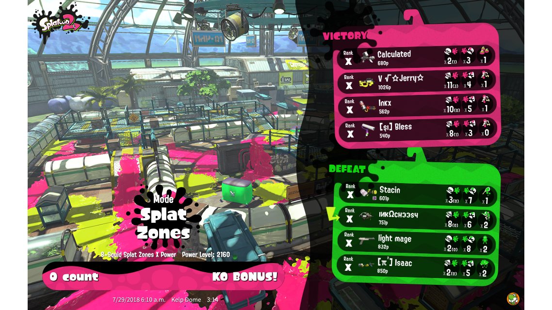 | Mode | Splat Zones - Ranked Battle | ||||||||||||||||||||||||||||