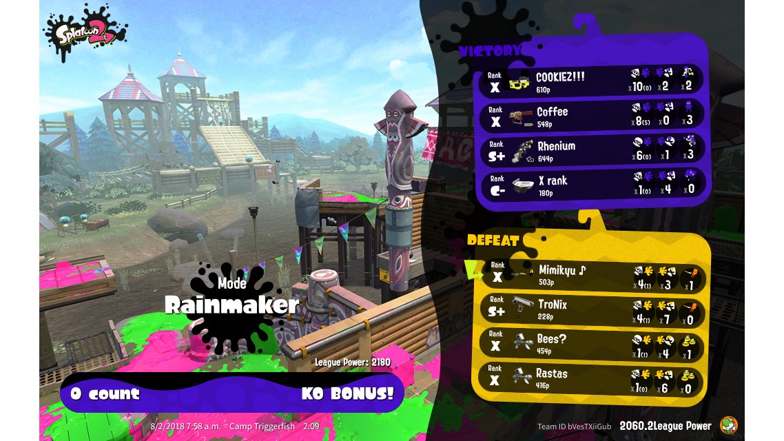 | Mode | Rainmaker - League Battle (Twin) | ||||||||||||||||||||||||||||