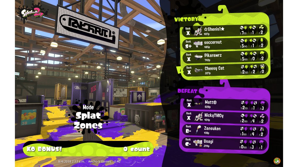 | Mode | Splat Zones - Private Battle | |||||||||||||||||||||||||||||||
