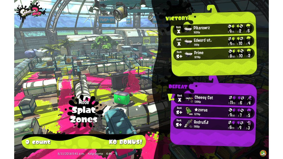| Mode | Splat Zones - Private Battle | ||||||||||||||||||||||||||||