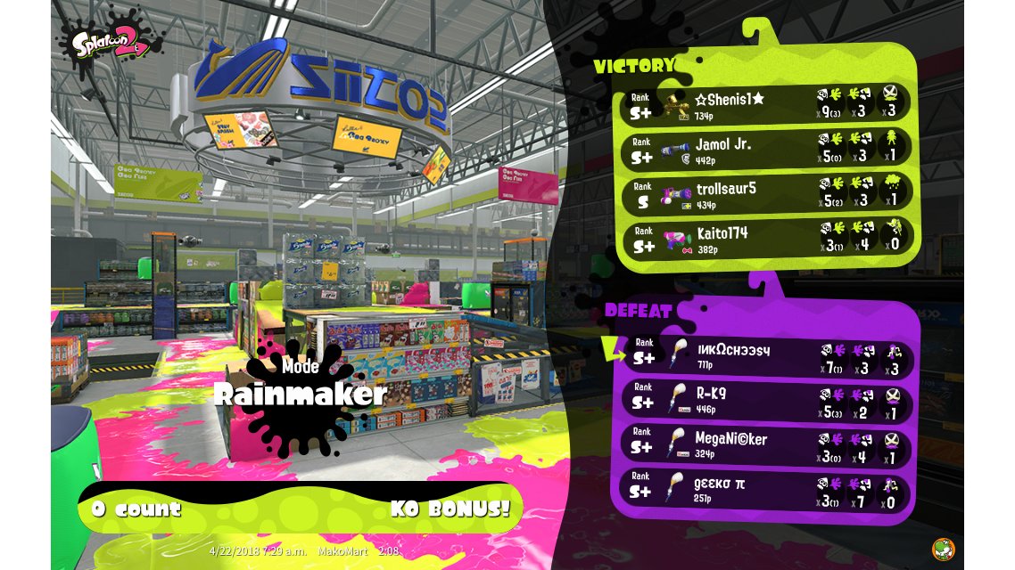 | Name | Weapon | Level | Rank | Inked | k+a/sp | k/d |
