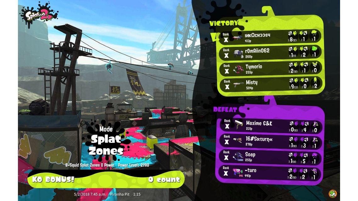 | Mode | Splat Zones - Ranked Battle | |||||||||||||||||||||||||||||||||||||