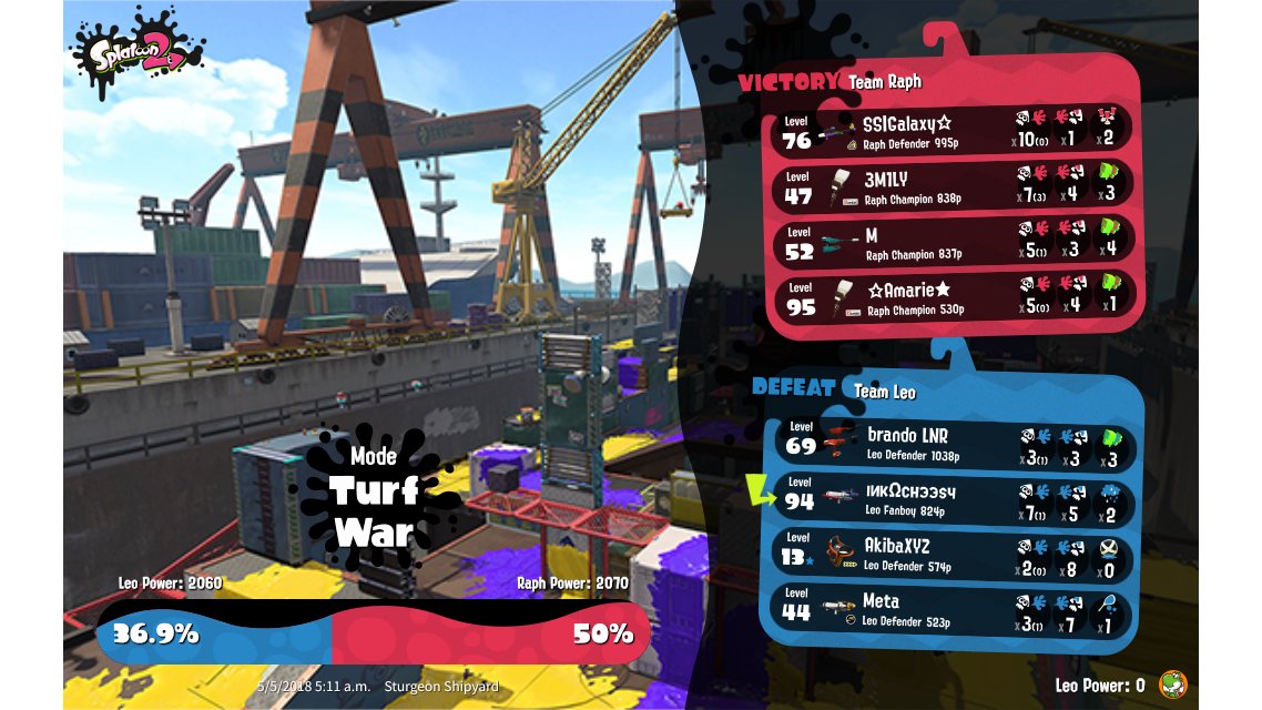 | SplatNet Battle # | 5,697 | |||||||||||||||||||||||||||||||