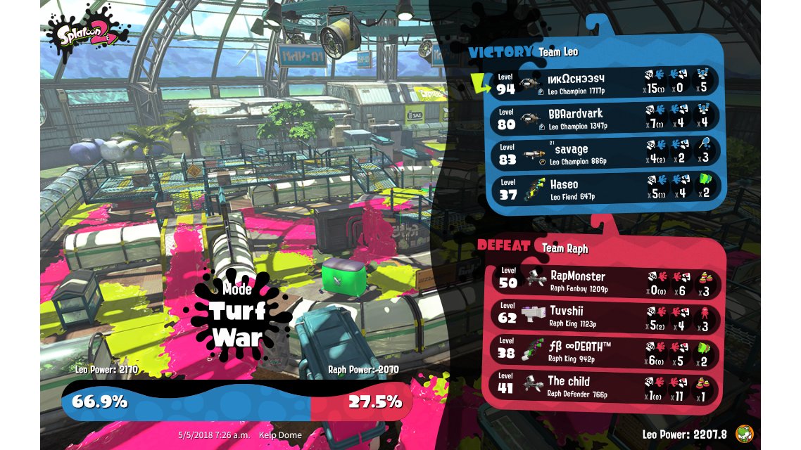 | SplatNet Battle # | 5,724 | ||||||||||||||||||||||||||||||||||