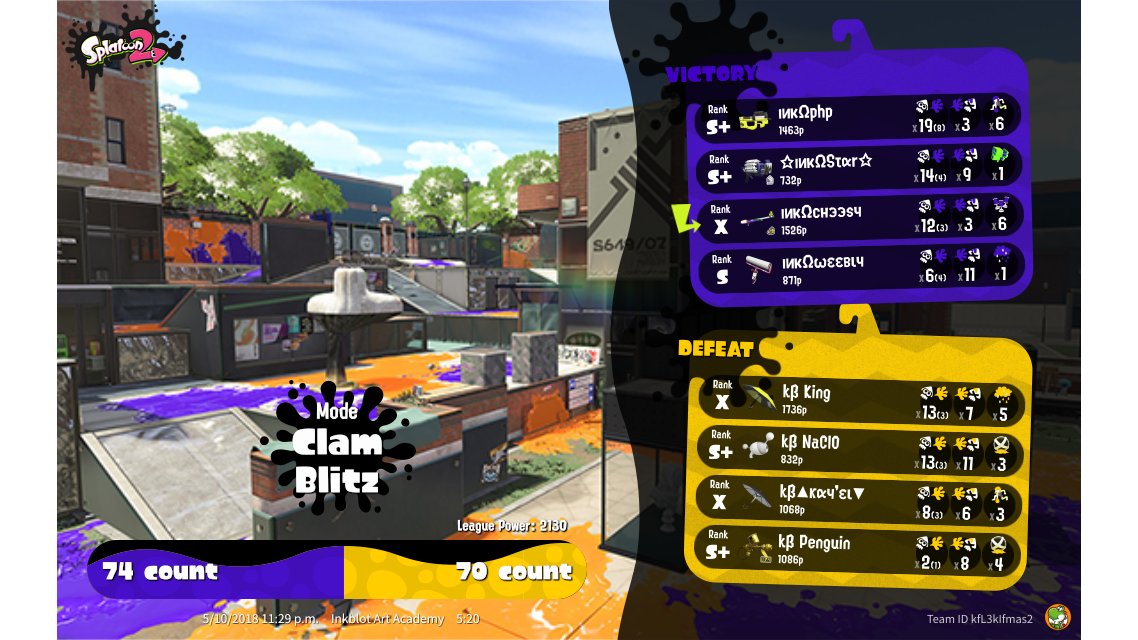 | Mode | Clam Blitz - League Battle (Quad) | ||||||||||||||||||||||||||||||||||