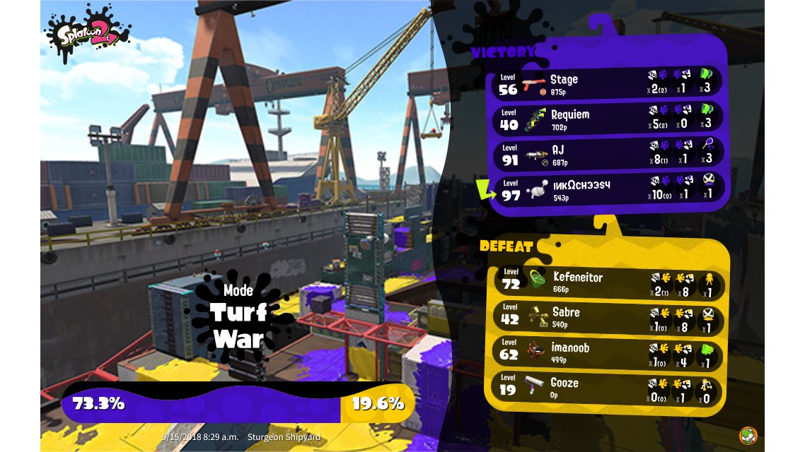 | Mode | Turf War - Regular Battle | |||||||||||||||||||||||||||||||