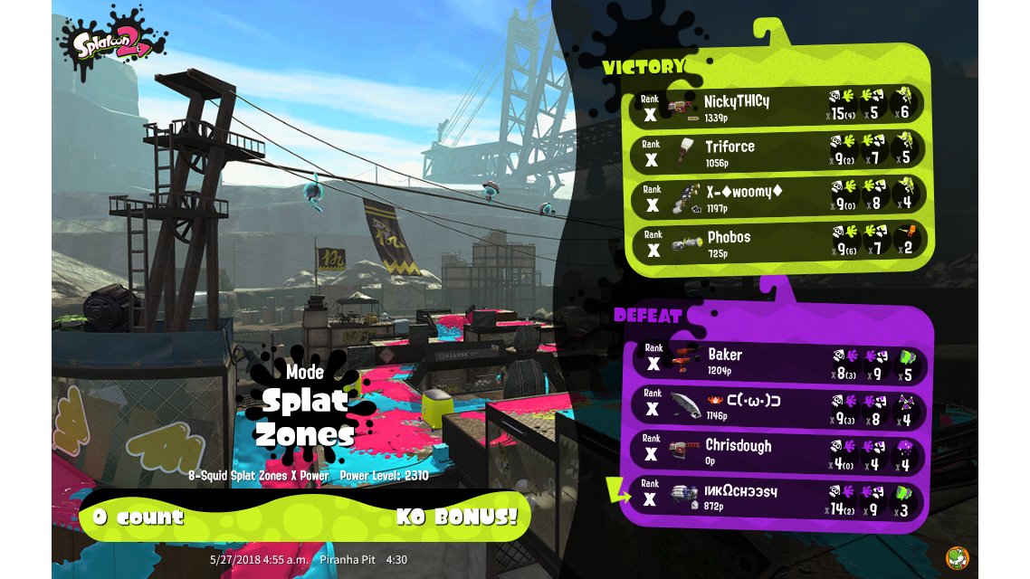 | Mode | Splat Zones - Ranked Battle | ||||||||||||||||||||||||||||||||||