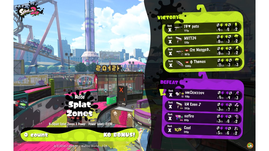 | Mode | Splat Zones - Ranked Battle | ||||||||||||||||||||||||||||||||||