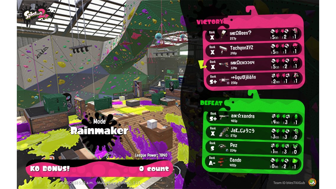 | Mode | Rainmaker - League Battle (Twin) | |||||||||||||||||||||||||||||||