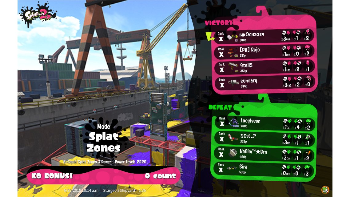 | Mode | Splat Zones - Ranked Battle | ||||||||||||||||||||||||||||||||||