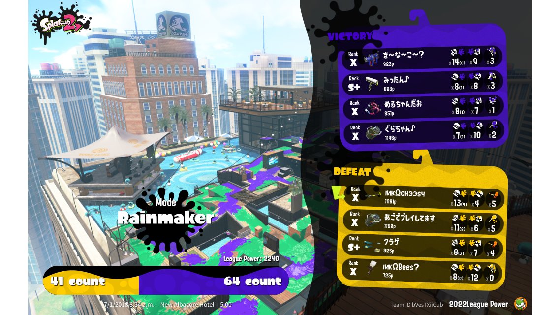 | Mode | Rainmaker - League Battle (Twin) | |||||||||||||||||||||||||||||||