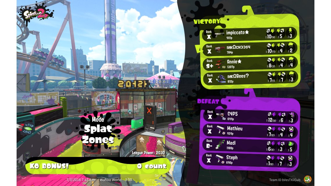 | Mode | Splat Zones - League Battle (Twin) | ||||||||||||||||||||||||||||