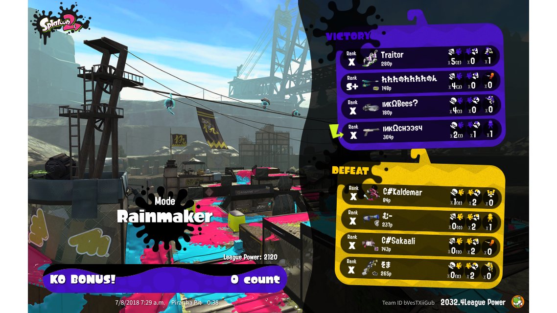 | Mode | Rainmaker - League Battle (Twin) | |||||||||||||||||||||||||||||||