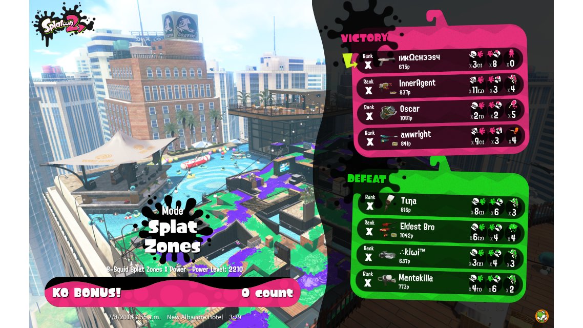 | Mode | Splat Zones - Ranked Battle | |||||||||||||||||||||||||||||||