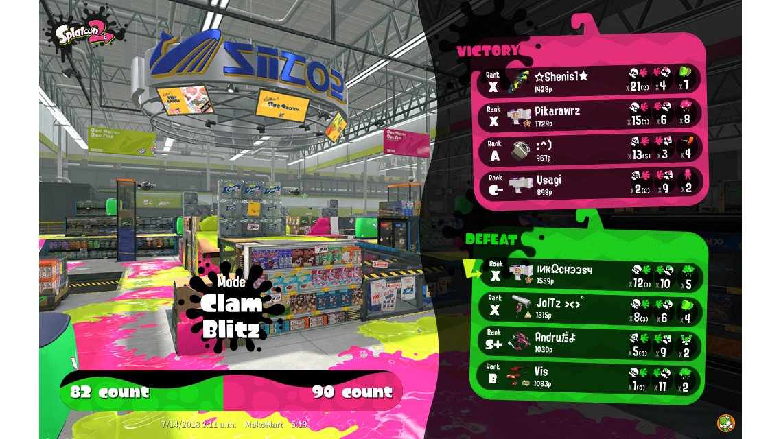 | Mode | Clam Blitz - Private Battle | |||||||||||||||||||||||||||||||