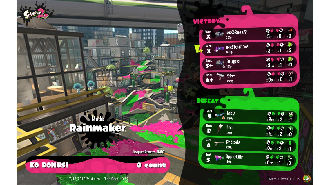 | Mode | Rainmaker - League Battle (Twin) | |||||||||||||||||||||||||||||||