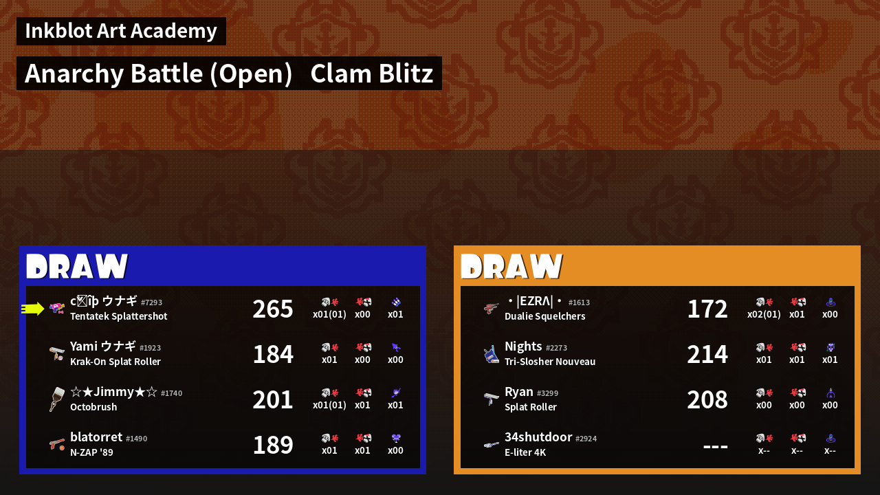 | Mode | Clam Blitz - Anarchy Battle (Open) | ||