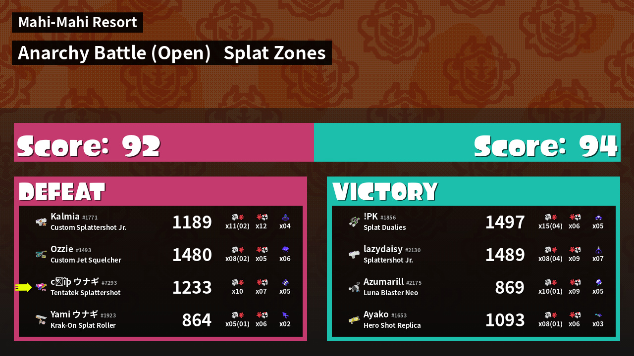| Mode | Splat Zones - Anarchy Battle (Open) | ||