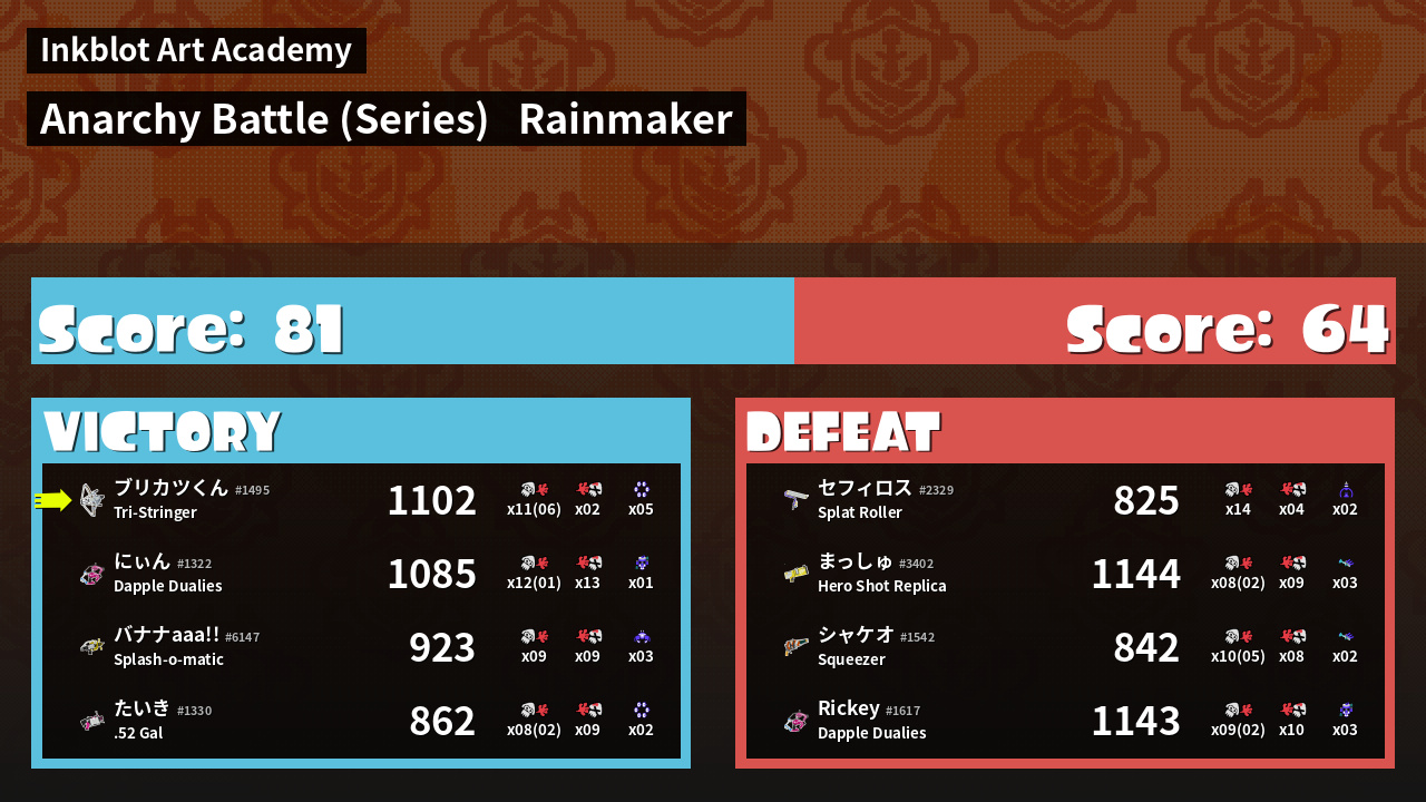 | Mode | Rainmaker - Anarchy Battle (Series) | ||