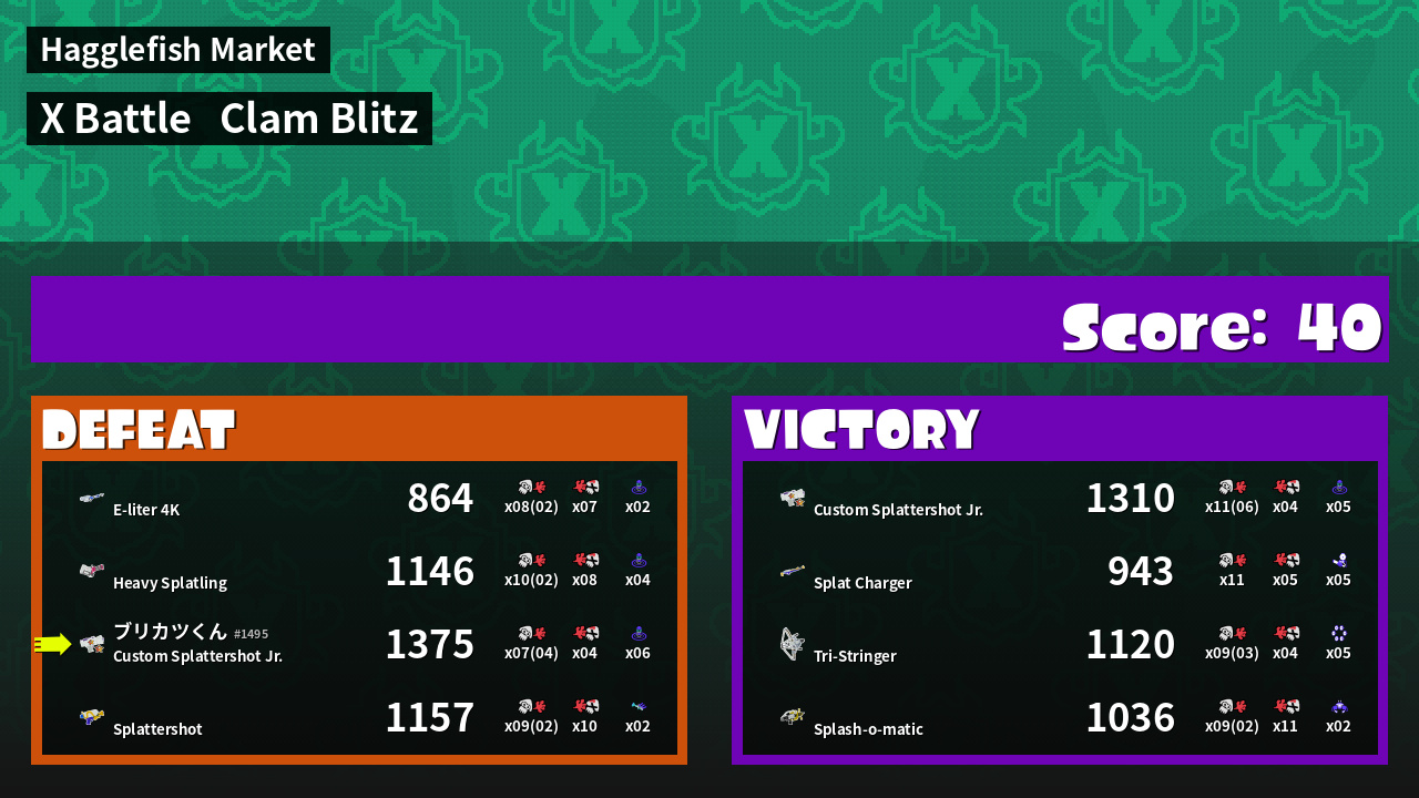 | Mode | Clam Blitz - X Battle | ||