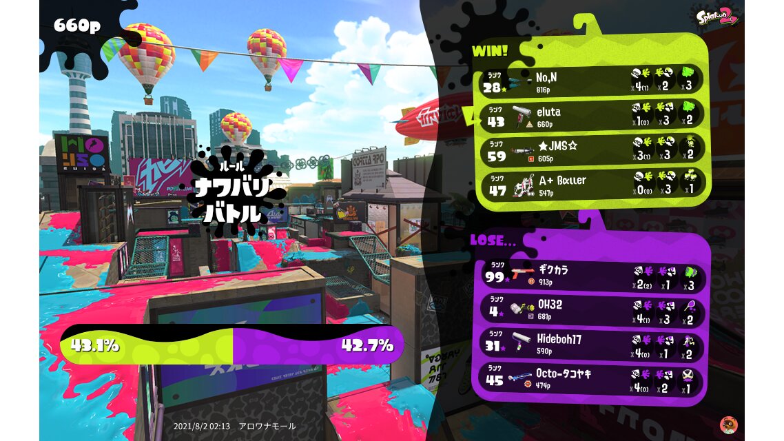 | Mode | Turf War - Regular Battle | |||||||||||||||||||||||||||||||||||||