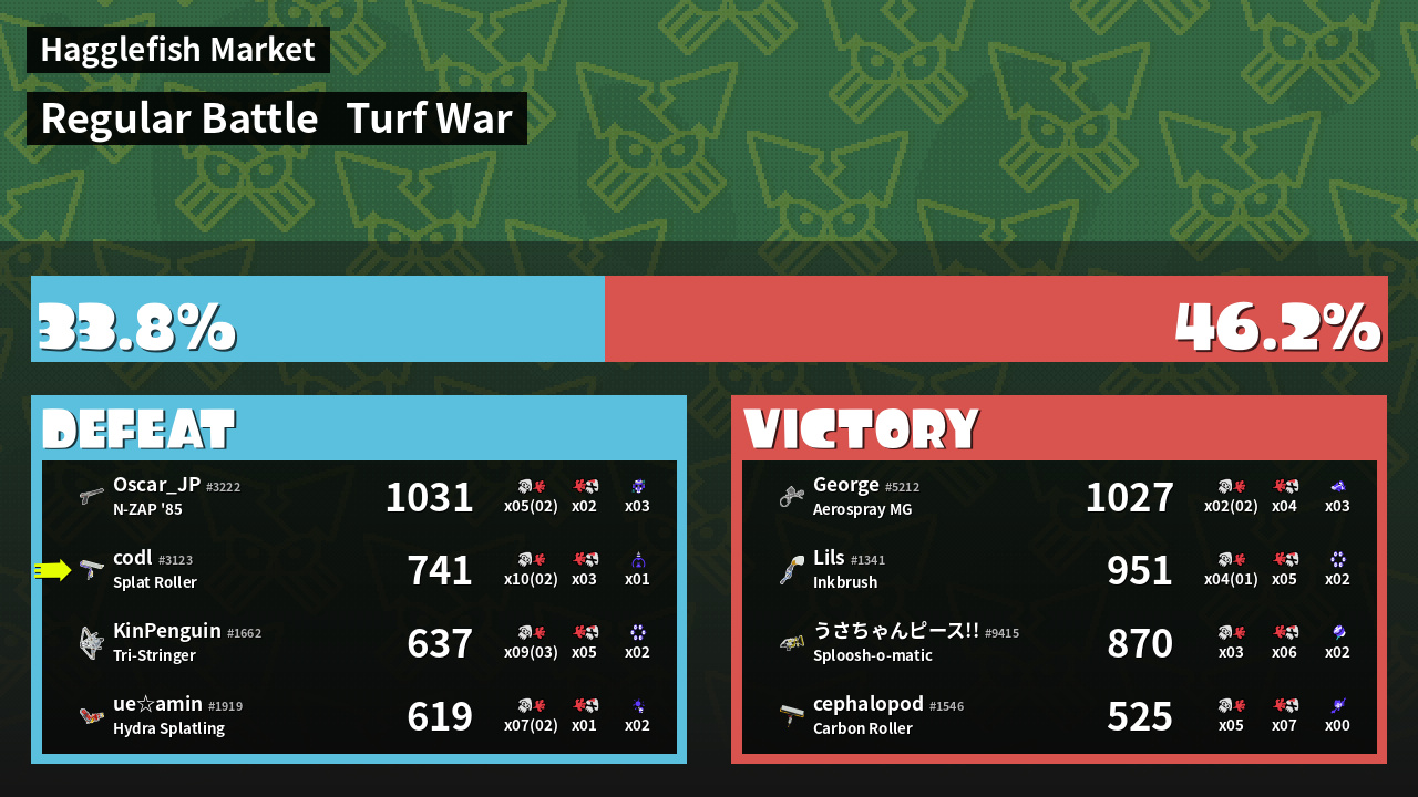 Kills / Deaths | 8 + 2 / 3 > Kill Ratio: 2.67 | ||