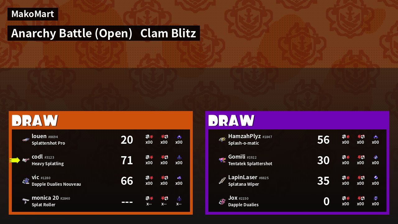 Results of codl's Battle
