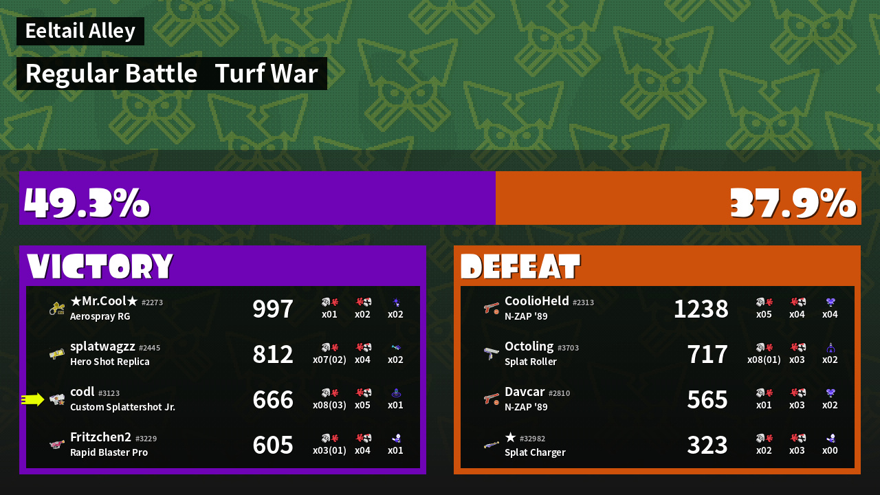 Kills / Deaths | 5 + 3 / 5 = Kill Ratio: 1.00 | ||