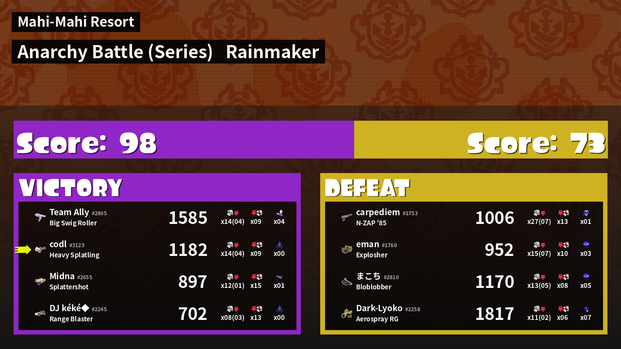 Kills / Deaths | 10 + 4 / 9 > Kill Ratio: 1.11 | ||