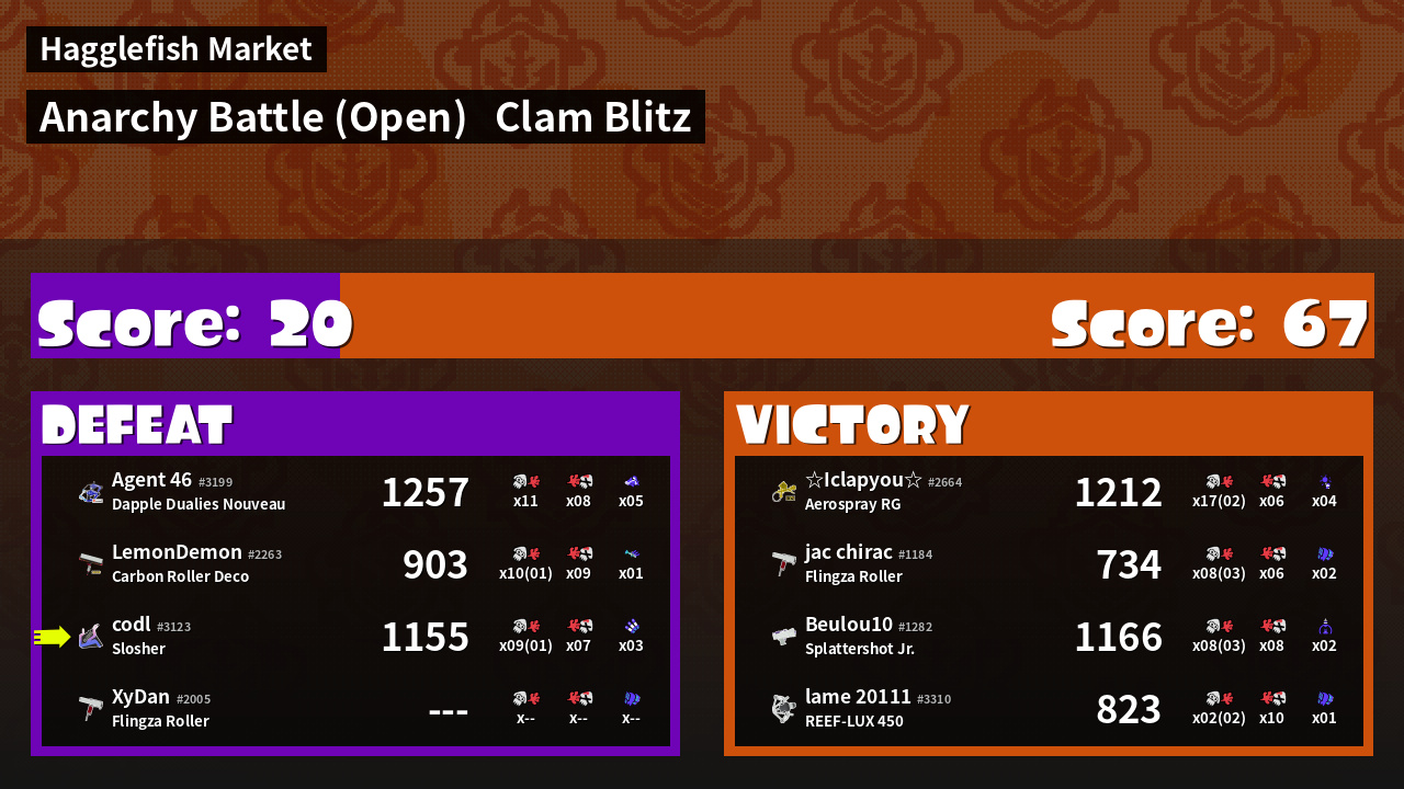 Results of codl's Battle