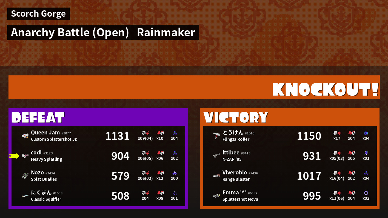 Name | Weapon | Inked | ![]() |