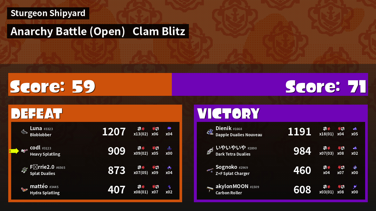 Results of codl's Battle