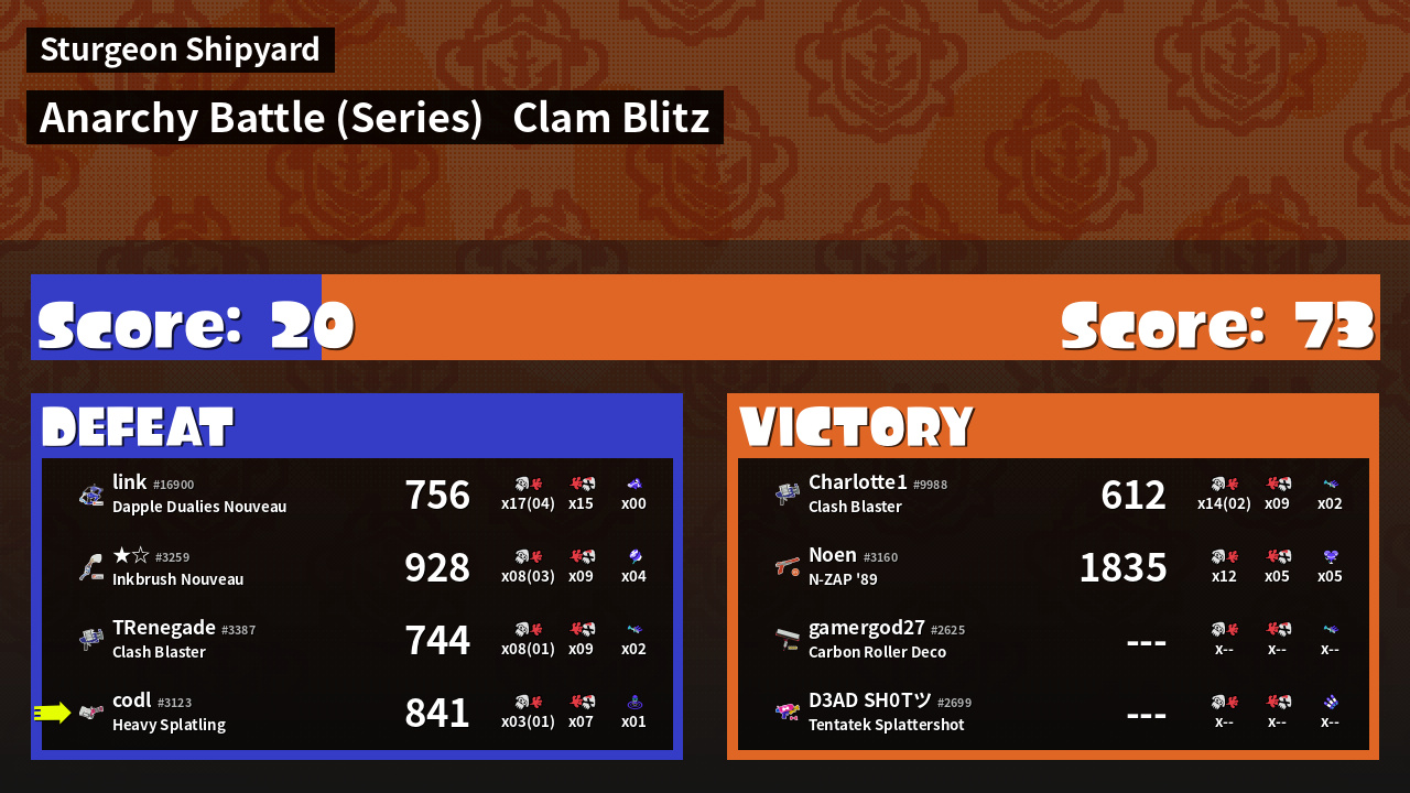 Results of codl's Battle