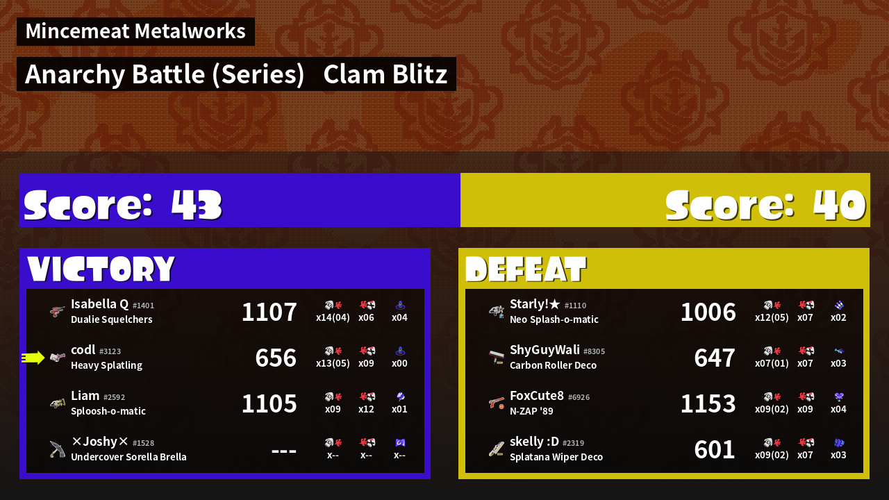 Kills / Deaths | 8 + 5 / 9 < Kill Ratio: 0.89 | ||