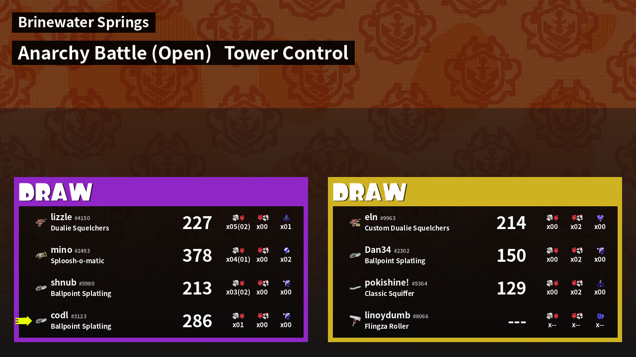 Name | Weapon | Inked | ![]() |