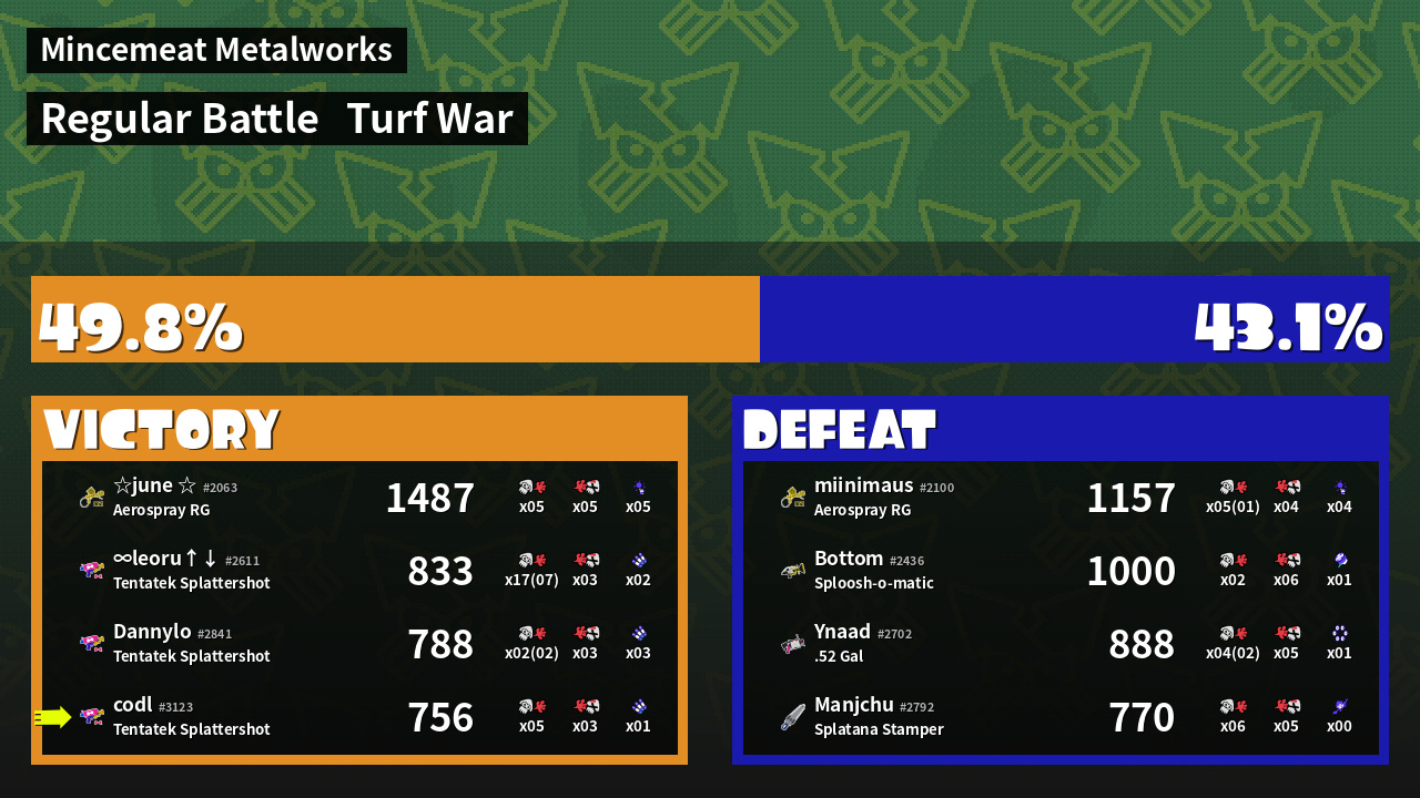 Kills / Deaths | 5 + 0 / 3 > Kill Ratio: 1.67 | ||