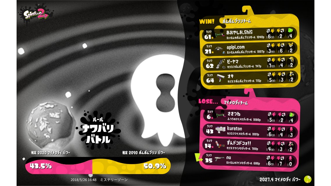 | Splatfest Title | マイメロディ Queen → マイメロディ Queen | ||||||||||||||||||||||||||||||||||