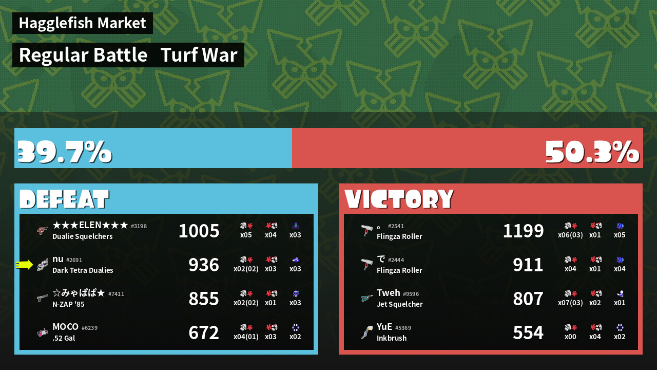 | Medals | #1 Home-Base Inker #1 Splat Assister #1 Ground Traveler | ||
